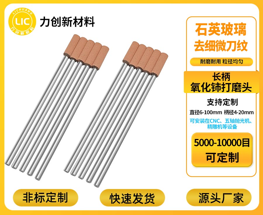 玻璃加工行业自动化、精细化转型进程中,抛光耗材的性能直接决定生产效率、产品品质与成本控制。氧化铈打磨头作为专为CNC、机械手、五轴机床、精雕机设计的上机专用工具,聚焦玻璃自动化快速抛光抛亮核心需求,以耐磨耐用、高效精准的优势,成为众多玻璃加工企业的优选耗材,持续赋能生产效能升级。 氧化铈打磨头的适配设计贴合自动化生产痛点,衔接流畅且便捷。采用标准化接口打造的氧化铈打磨头,无需对现有自动化设备进行复杂改装或参数重构,经过简单调试即可快速完成对接,平稳融入生产流程,有效缩短设备适配周期,降低企业技术升级的时间与人力成本。在抛光效果上,氧化铈打磨头凭借均匀分布的磨料粒径,与玻璃表面形成均衡受力面,精准把控抛光力度,无论是处理石英玻璃的顽固刀纹,还是清除光学玻璃的细微毛刺与白边,都能实现一致的平整透亮抛光效果,彻底解决人工抛光品质波动、效率低下的问题,为批量生产的品质标准化提供有力保障。