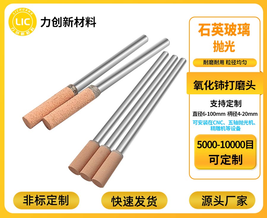作为氧化铈打磨头的源头工厂,深圳市力创新材料科技有限公司可提供个性化定制服务,目数覆盖5000-10000mm,直径涵盖3-80mm,能够根据企业的具体加工需求,定制专属规格的氧化铈打磨头,精准匹配不同玻璃材质、不同抛光工艺的使用需求。同时,公司与大型精密企业及清华大学等知名院校建立深度合作,依托专业技术与丰富行业经验,为客户提供专用的抛光耗材应用方案,高效解决表面处理工艺耗材方面的各类难题。