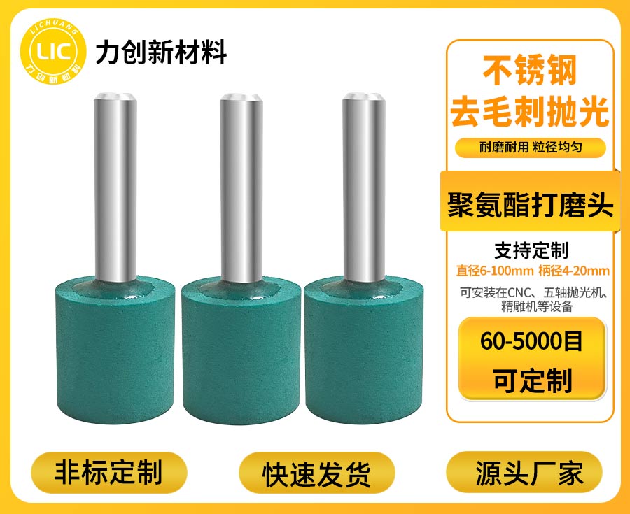 聚氨酯打磨头的产品特点,完全贴合工业生产的多样化需求。耐磨耐用是其核心竞争力,磨料与聚氨酯基材通过高温高压工艺紧密结合,不易出现磨粒脱落、工具变形等问题,单支聚氨酯打磨头可连续作业数十小时,使用寿命远超普通树脂磨具,减少了工具更换频率,降低生产中断风险。作为源头工厂,深圳市力创新材料科技有限公司提供全方位定制服务:聚氨酯打磨头的目数从60目到5000目梯度覆盖,粗磨去厚毛刺、细磨做镜面抛光都能满足;直径3-80mm的规格范围,适配从微型电子零件到大型机械构件的加工需求;针对深孔、曲面等异形工件,还可提供专属模具开发与快速打样服务,确保聚氨酯打磨头与工件表面完美贴合。