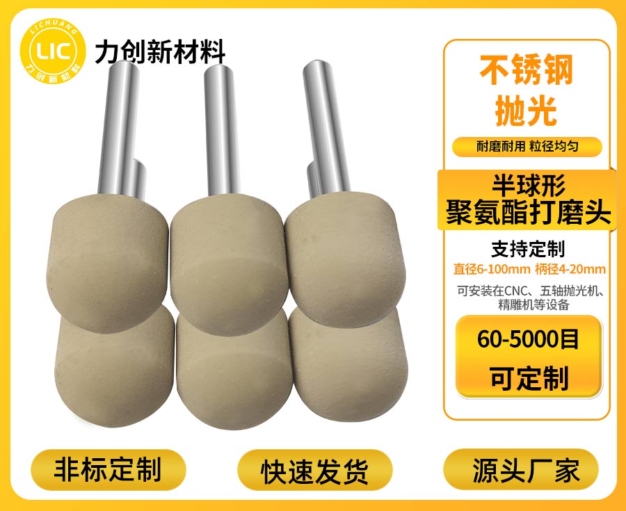 二、按加工设备选对“适配性强”的聚氨酯打磨头 聚氨酯打磨头需与加工设备精准匹配,才能发挥最优效能。针对CNC机床、五轴机床等高精度自动化设备,应选择尺寸公差小、安装接口匹配的聚氨酯打磨头,确保装机后无需复杂调试,即可精准跟随设备预设轨迹作业,保障批量工件处理的一致性;机械手作业多为连续高频次运转,需重点关注聚氨酯打磨头的耐磨耐用性,减少工具更换频次,避免中断生产节奏;精雕机多用于小型精密零件加工,建议选择直径3-20mm的小型聚氨酯打磨头,适配细微毛刺、窄缝刀纹等精细处理需求,提升加工精度。 四、按厂家实力选对“品质保障”的聚氨酯打磨头 选择聚氨酯打磨头时,厂家的技术实力、定制能力与售后服务同样重要。专注研发聚氨酯打磨头系列的深圳市力创新材料科技有限公司,核心团队拥有13年相关行业管理经验,成员均来自大型磨料磨具知名生产企业,具备高素质专业化的制造能力。作为源头工厂,公司可提供灵活定制服务,聚氨酯打磨头目数覆盖60-5000目,直径范围3-80mm,可根据工件图纸调整形状与规格,精准适配异形、深腔等特殊加工场景。同时,公司配备50人专业售后服务团队,可提供选型指导、上机调试、维护支持等全流程服务,及时解决使用中的问题,保障生产顺畅。