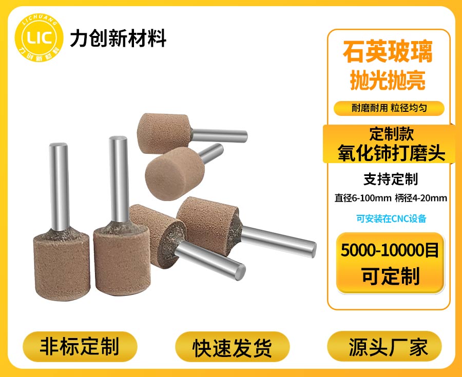 氧化铈打磨头作为石英玻璃、光学玻璃抛光的核心工具,适配CNC、机械手、五轴机床、精雕机等自动化设备,正确使用能充分发挥其粒径均匀、耐磨耐用的优势,高效完成去毛刺、去刀纹、去白边作业,同时实现降本增效。以下是氧化铈打磨头的完整使用流程,兼顾操作规范与效果保障。