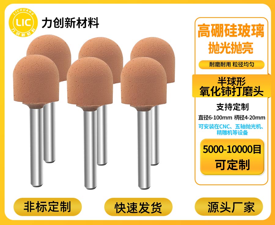 对于玻璃加工企业来说,生产效益的提升离不开高效、稳定的核心装备。深圳市力创新材料科技有限公司研发的氧化铈打磨头,专为CNC、机械手、五轴机床、精雕机等自动化设备定制,凭借耐磨耐用、降本增效的显著优势,成为企业提升生产效益的关键选择。