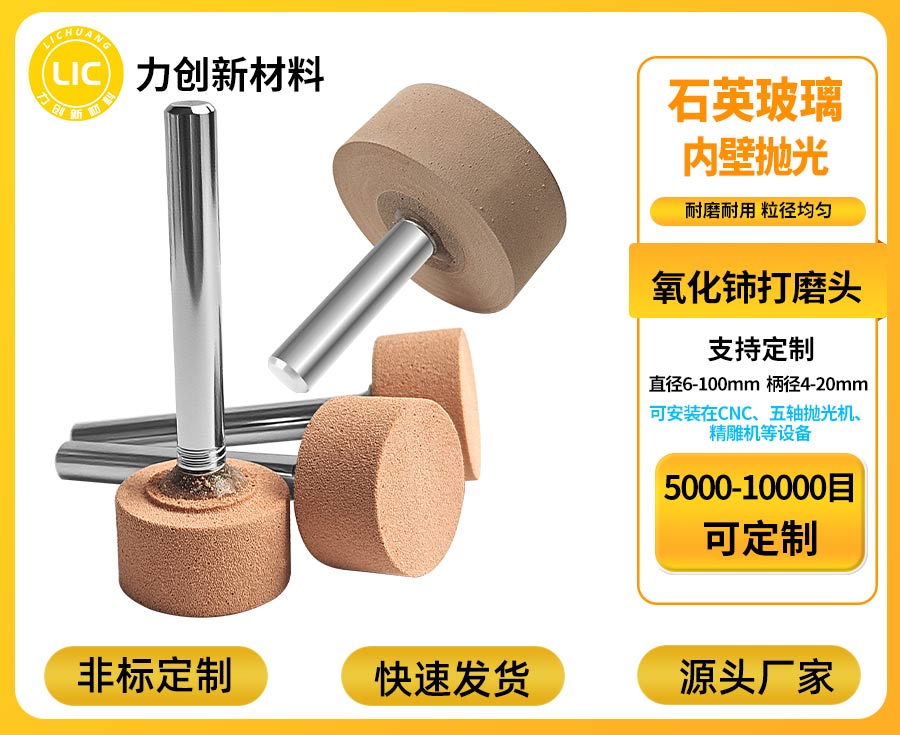 作为氧化铈打磨头的源头工厂,深圳市力创新材料科技有限公司可满足多样化定制需求,目数覆盖5000-10000mm,直径涵盖3-80mm,能够根据企业的具体加工需求,定制专属规格的氧化铈打磨头,精准匹配不同玻璃加工场景。同时,公司与大型精密企业及清华大学等知名院校建立深度合作,依托专业的技术支持与丰富的行业经验,为客户提供专用的抛光耗材应用方案,高效解决表面处理工艺耗材方面的各类难题。深圳市力创新材料科技有限公司旗下的氧化铈打磨头,始终坚守耐磨耐用、降本增效的核心优势,助力企业破解抛光痛点、提升生产效益。为保障客户使用体验,公司专门配备了50人售后服务团队,及时响应客户咨询与需求,提供专业的技术指导与售后保障,让客户使用更安心、更省心。
