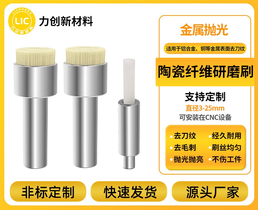 深圳市力创新材料科技有限公司出品的陶瓷纤维刷,始终坚守耐磨耐用、降本增效的核心定位,广泛适用于不锈钢、铝合金等金属表面处理,常规产品柄径3-12mm、直径3-25mm,同时支持按需定制,满足不同企业的个性化加工需求。公司拥有丰富的精密加工企业服务经验,可提供专属的抛光耗材应用方案,解决表面处理工艺中的各类难题,更配备50人售后服务团队,及时响应客户咨询与需求,提供全程专业保障。