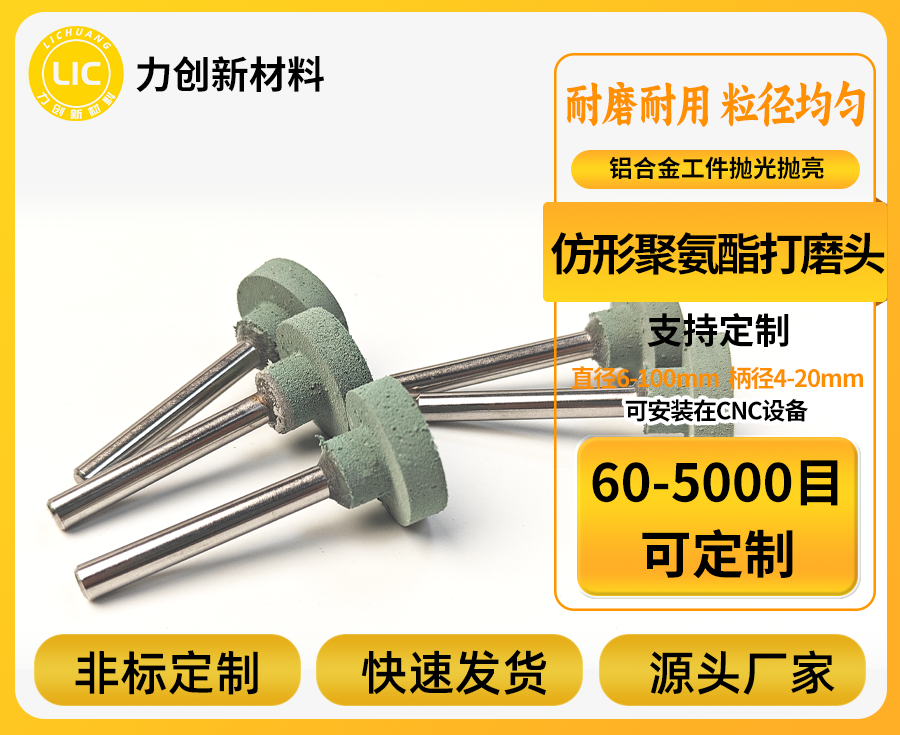 力创的实力还体现在服务规模与定制能力上。截至目前,已服务过超万家精密加工企业,针对不同行业的抛光需求,提供专用的抛光耗材应用方案,解决表面处理工艺中关于耗材的各类难题。无论是轮子直径、柄直径、柄螺纹大小,还是硬度(30°~95°)、目数(60-5000 目),或是半球形、圆柱形等形状,力创聚氨酯打磨头都支持定制,适配多样化的抛光场景,让耐用性在不同工况下都能充分发挥。