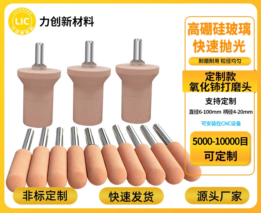 在玻璃精密加工领域,自动化生产的核心诉求是兼顾效率与品质,而深圳市力创新材料科技有限公司研发的氧化铈打磨头,正以科学的抛光逻辑与实用性能,清晰解答氧化铈打磨头如何抛光玻璃的行业疑问,成为CNC、机械手、五轴机床、精雕机的上机专用利器,让玻璃抛光更高效、更稳定、更经济。 氧化铈打磨头的抛光核心,在于精准适配与高效作用的双重设计。这款氧化铈打磨头专为自动化机床量身打造,标准化接口可快速与各类机床主轴精准对接,无需复杂调试即可投入作业,完美契合自动化生产的快节奏。抛光时,氧化铈打磨头凭借均匀分布的磨料粒径,与玻璃表面充分且均衡接触,无论是处理石英玻璃的坚硬表层,还是满足光学玻璃的精细抛亮需求,都能精准去除加工残留的毛刺、刀纹与白边,平面与侧面抛光均可胜任,让每一片玻璃都能呈现平整透亮的质感,有效规避人工抛光时受力不均、痕迹明显的问题。