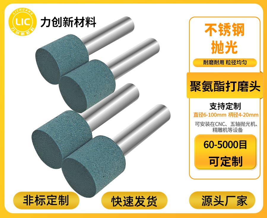 此外,公司不仅服务过多家精密加工企业,能提供针对性的抛光耗材应用方案,解决表面处理工艺中的耗材难题,还与大型精密企业及清华大学等知名院校达成合作,让聚氨酯打磨头的技术迭代始终紧跟行业前沿。 针对不同企业的加工需求,深圳市力创新材料科技有限公司还提供灵活的定制服务:聚氨酯打磨头的目数覆盖60-5000目,可满足从粗磨去氧化层到细抛增亮的全流程需求;直径范围3-80mm,适配不同尺寸的金属工件;若有特殊形状需求,也可按需定制,进一步提升工具与工件的适配度。 更值得信赖的是,公司配备50人售后服务团队,无论客户在产品选型、上机调试还是日常使用中遇到问题,都能及时获得技术支持,确保聚氨酯打磨头在生产线上稳定发挥作用。 如果您的企业正受金属毛刺处理效率低、成本高的困扰,不妨了解这款聚氨酯打磨头。