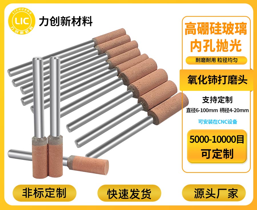 耐磨耐用的特性,让氧化铈打磨头在自动化生产中更具优势。自动化机床的连续运转对工具损耗较大,而氧化铈打磨头通过优化材料配方,能在高频次抛光中保持磨料完整性,减少颗粒脱落与性能衰减,大幅降低工具更换频率。这种稳定性直接转化为生产效益:对比人工抛光,氧化铈打磨头的效率达到人工的10倍,配合自动化机床可实现24小时连续作业;抛光不良率比人工降低60%,减少因质量问题导致的停机返工;综合打磨抛光成本降低80%,且氧化铈打磨头的产品性能达到国际先进水平,让自动化生产的性价比显著提升。 深圳市力创新材料科技有限公司为氧化铈打磨头的适配与应用提供坚实保障。公司专注研发氧化铈打磨头系列,团队拥有13年相关行业管理经验,成员均来自大型磨料磨具知名生产企业,具备高素质专业化的制造能力,从原料筛选到结构设计都围绕机床适配需求展开。多年来,公司服务过多家精密加工企业,能根据不同机床型号与加工场景,提供专用的抛光耗材应用方案;支持氧化铈打磨头按需定制,目数覆盖5000-10000mm、直径涵盖3-80mm,精准匹配各类机床的加工参数。