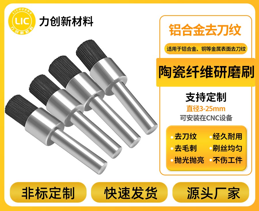 该款陶瓷纤维刷适配材质广泛,除铝合金、钛合金外,还可用于不锈钢、铜等多种金属的表面处理,在航空航天精密构件、汽车核心零部件、高端五金件等领域均有成熟应用。作为深圳市力创新材料科技有限公司旗下核心研磨产品,其品质依托企业多年行业积淀得到坚实保障。公司专注研磨刷系列研发与生产,核心团队拥有13 年行业管理经验,制造体系专业规范,同时与大型精密企业及清华大学等院校开展深度合作,持续迭代产品性能与应用方案。