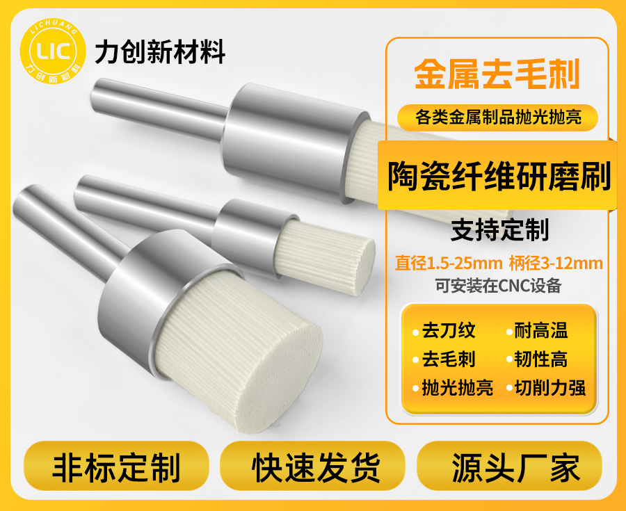 在追求极致表面光洁度与加工效率的工业领域,力创陶瓷研磨刷正凭借其卓越性能成为去毛刺、除刀纹与精密抛光的关键工具。力创新材料提供柄径3-12mm、直径1.5-25mm的丰富规格,并支持目数、尺寸及刷丝的深度定制,精准匹配您的加工需求。